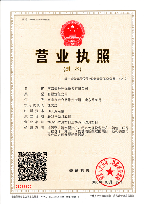 專業(yè)的各類水處理工程、水處理專用設(shè)備及泵類產(chǎn)品生產(chǎn)服務(wù)商南京云升環(huán)保設(shè)備有限公司占地面積二萬三千五百平方米,建筑面積約七千八百平方米,現(xiàn)有員工195名,各類工程技術(shù)人員41人,其中中高級以上22人,企業(yè)擁有各類大型專用機(jī)械72臺(tái)套,其中試驗(yàn)臺(tái)3套,動(dòng)靜平衡機(jī)4臺(tái),各類機(jī)床28臺(tái),CNC數(shù)控車床4臺(tái),各類焊接設(shè)備19臺(tái),各類起吊設(shè)備8臺(tái)套,交通、運(yùn)輸工具8輛,為產(chǎn)品開發(fā)、生產(chǎn)制造、質(zhì)量控制、快速服務(wù)提供了強(qiáng)有力的保障。南京云升環(huán)保設(shè)備有限公司全體員工愿以環(huán)境保護(hù)為己任,以市場為導(dǎo)向,以優(yōu)質(zhì)服務(wù)為原則,嚴(yán)格的管理、先進(jìn)的生產(chǎn)工藝、至上的品質(zhì)、完善的售前售后服務(wù),與廣大新老用戶攜手并進(jìn),共鑄輝煌。